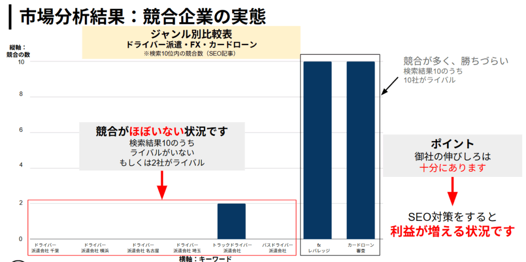 競争環境レッドオーシャン(激しい※大手・中小の資金力の差など)