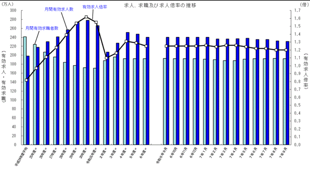 引用: 厚生労働省「一般職業紹介状況(令和7年9月分)