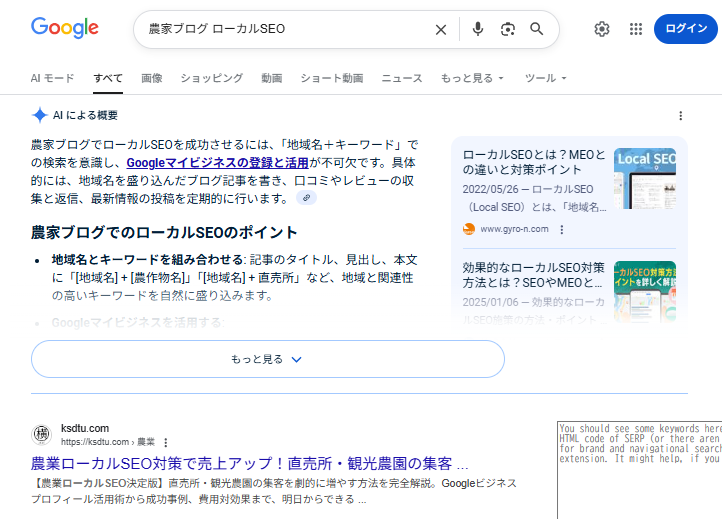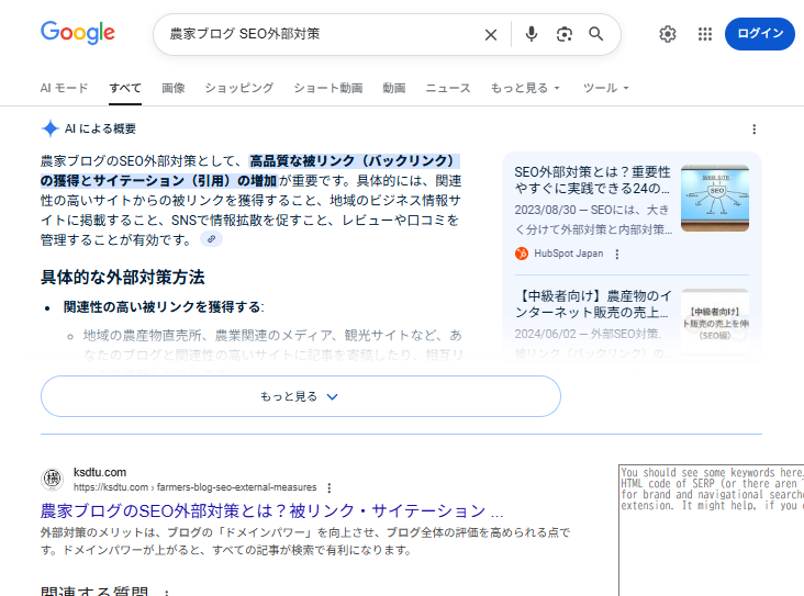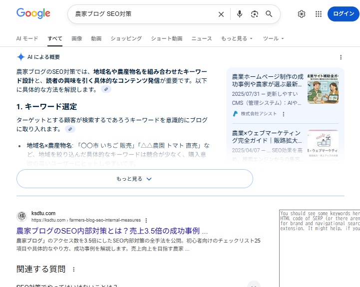 農業関連のキーワードでの検索1位を獲得した実績は、以下をご覧ください。