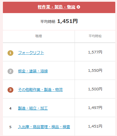 上記の「フォークリフト求人の平均時給:1,577円」は、「厚木市におけるバイト、パート、派遣平均時給:1,478 円」より約100円高い点も要チェックです。